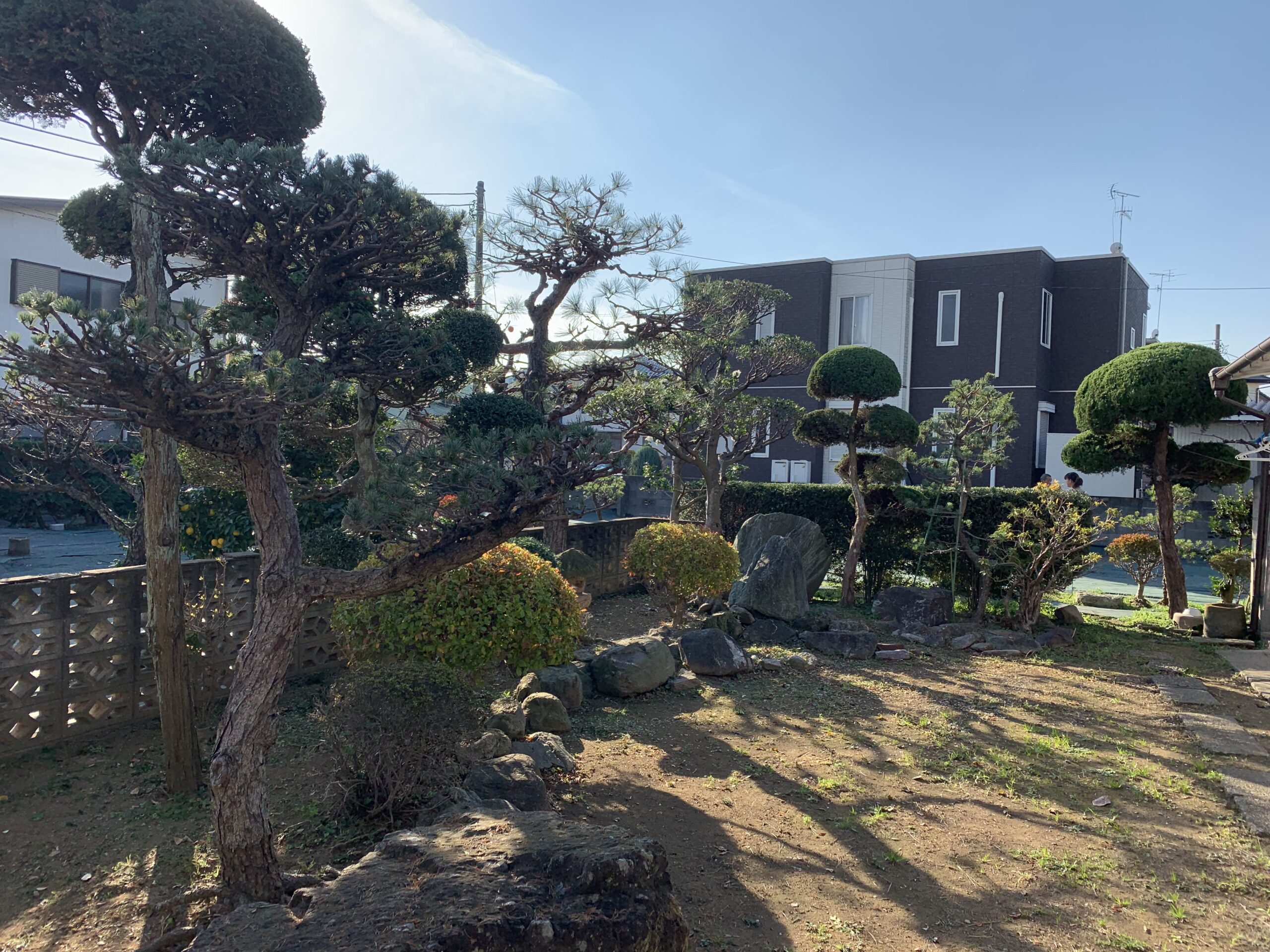 お庭に生い茂った雑草を刈り、整地、敷砂利いたしました。