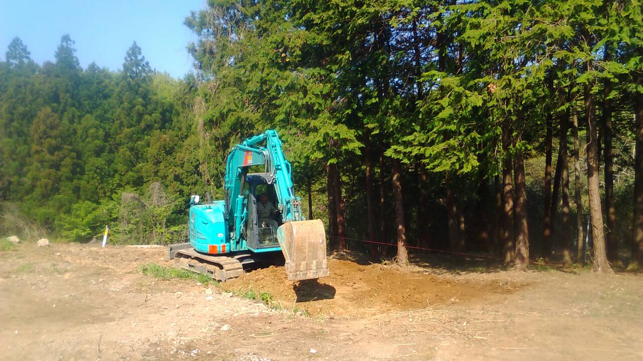 お庭の壁の際に植えていた植木を伐根いたしました。