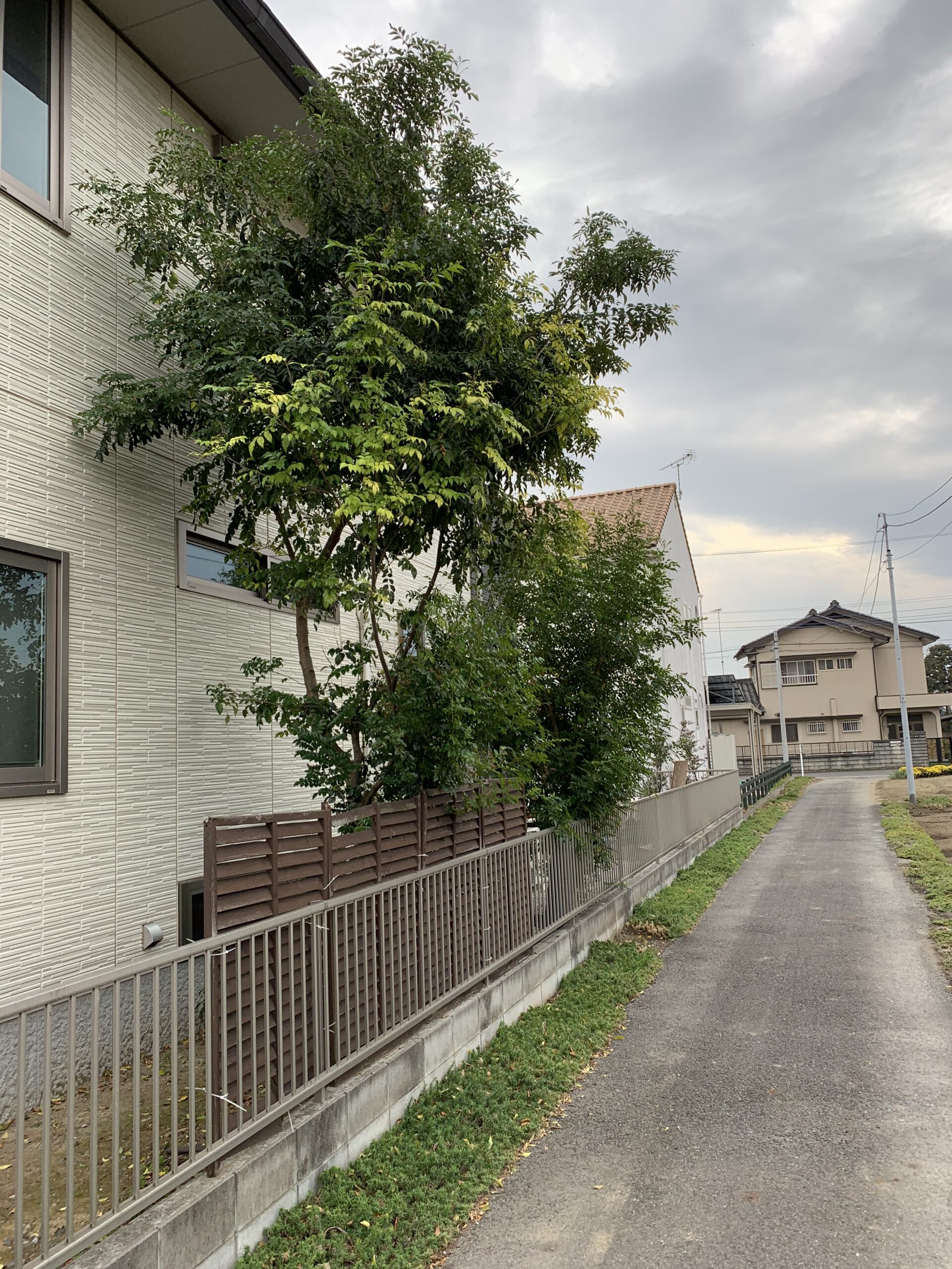 お庭の壁の際に植えていた植木を伐根いたしました。