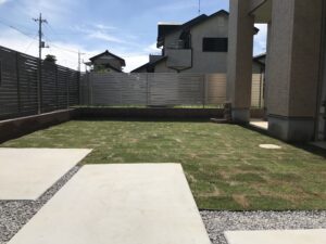 お庭に生い茂った雑草を刈り、整地、敷砂利いたしました。