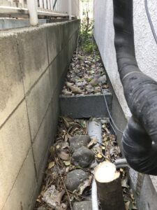 お庭の壁の際に植えていた植木を伐根いたしました。