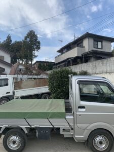 お庭に生い茂った雑草を刈り、整地、敷砂利いたしました。