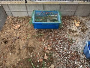 お庭の壁の際に植えていた植木を伐根いたしました。