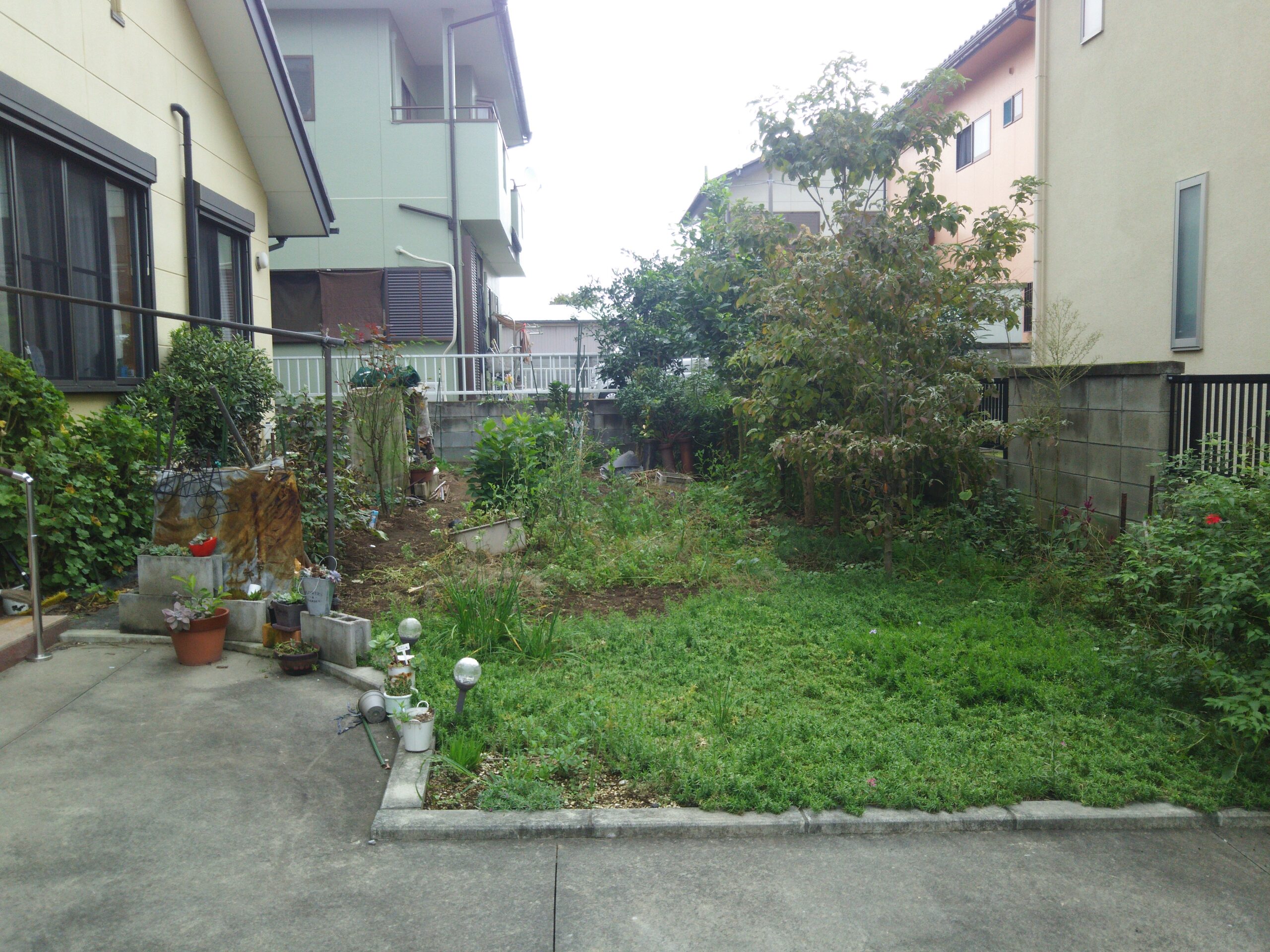 お庭に生い茂った雑草を刈り、整地、敷砂利いたしました。