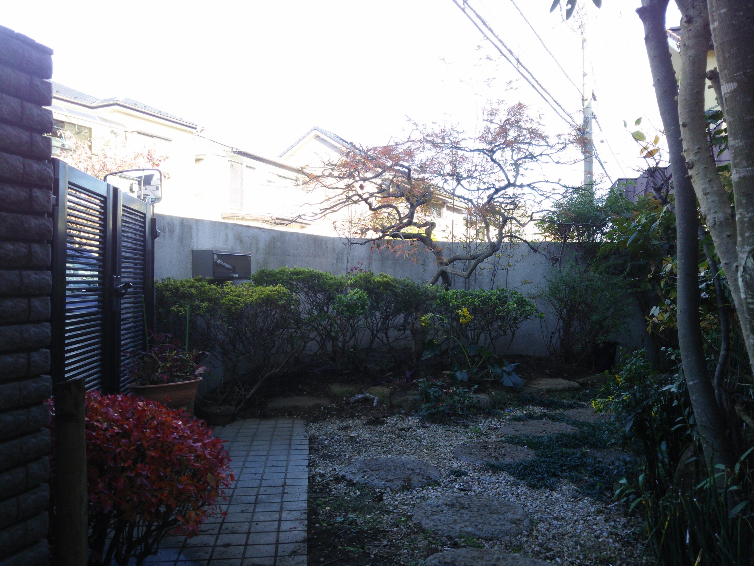 お庭に生い茂った雑草を刈り、整地、敷砂利いたしました。