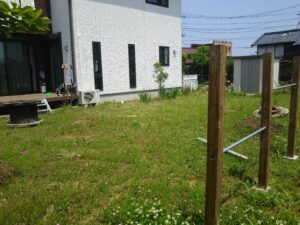 お庭の壁の際に植えていた植木を伐根いたしました。